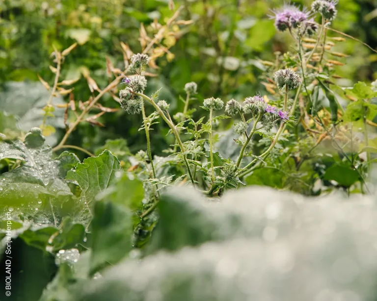 Bei diesen Voraussetzungen besiedelt eine bunte Vielzahl von Gräsern, Blumen und Kräutern die Rebgassen und lockt ihrerseits Scharen von Insekten an. Es entwickelt sich ein Mikrokosmos, der sich im Gleichgewicht hält und viel Kraft bei der Abwehr von Schädlingen und Pilzkrankheiten entfaltet. In derart angenehmem Klima können sich die Reben ungestört der wichtigen Aufgabe widmen, rundum gesunde und gehaltreiche Trauben zu erzeugen und sie bis zur vollen Reife zu bringen.