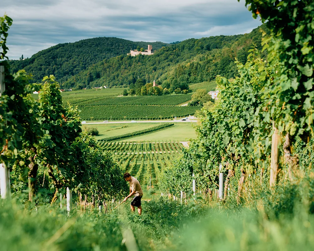Natürlich bewirtschaften bedeutet natürlich mehr Aufwand: 30 bis 40 pflegende, schneidende, versorgende Durchgänge sind pro Saison nötig, um schließlich jene gesunden und natürlichen Trauben zu ernten, die wir für charaktervolle Weine brauchen.