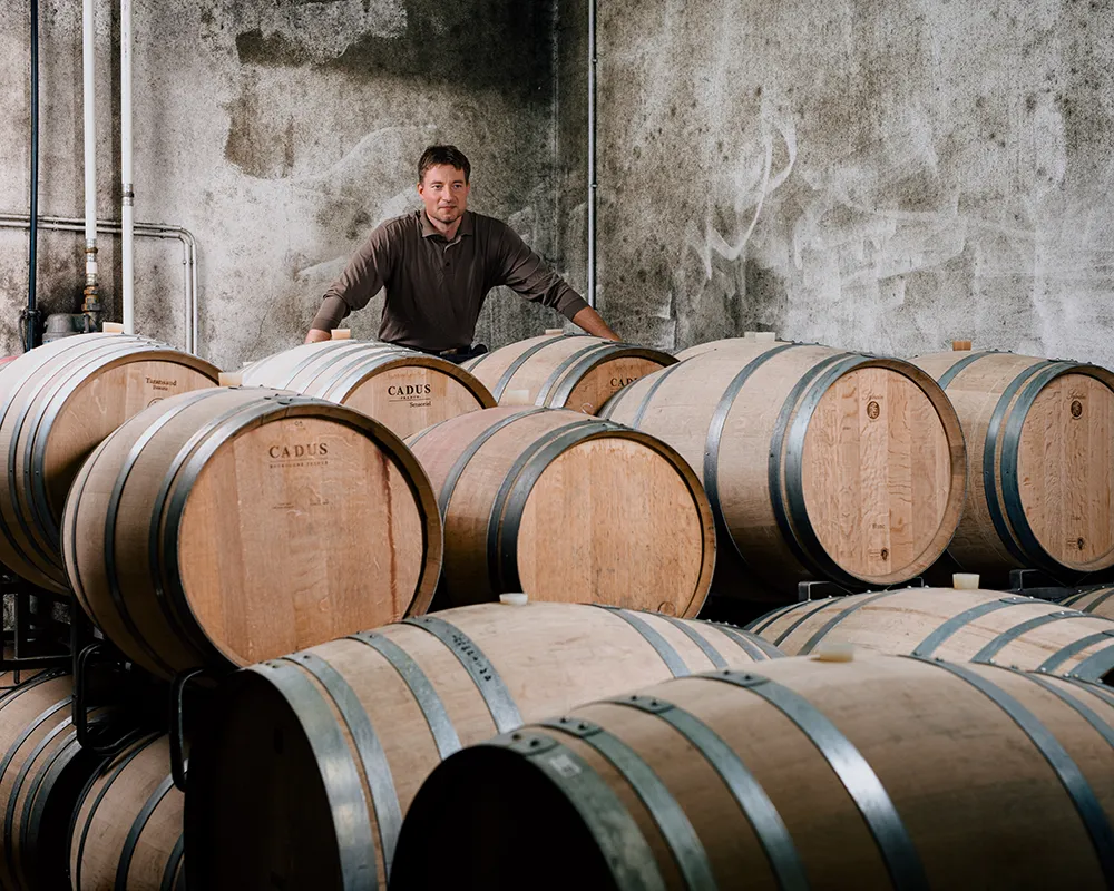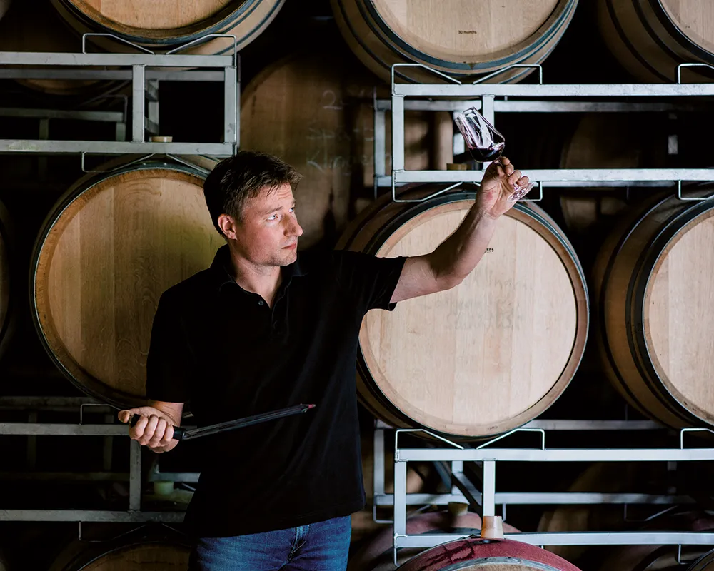 Wir setzen auf Spontangärung, die von den natürlich im Lesegut vorhandenen Hefen in Gang gesetzt wird und individuellere Weintypen hervorbringt. Die Gärungstemperatur kontrollieren wir mit einer Kühleinrichtung bei 16 bis 18 Grad. Das verlangsamt den Gärungsprozess und sorgt dafür, dass sich die vielschichtigen Fruchtaromen im richtigen Maße entwickeln und der Wein eine haltbarere Struktur erhält.